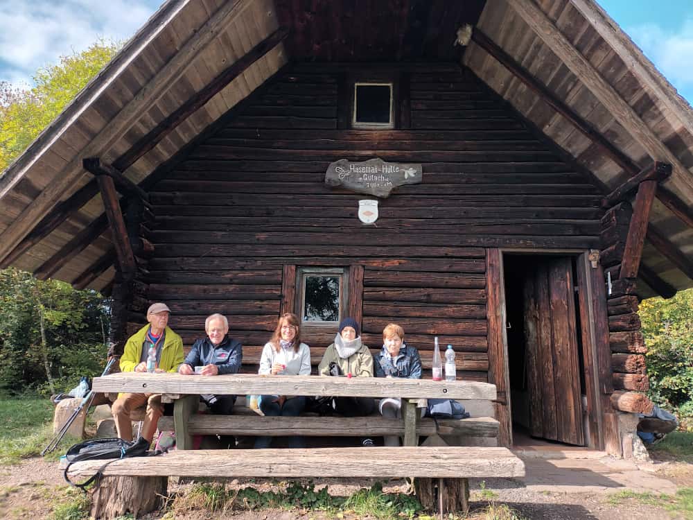 Nach dem Haseneckle begann ein steiler Anstieg bis der Farrenkopf auf 670 HM erreicht wurde. An der Hasemannhütte wurde bei guter Stimmung das wohlverdiente Vesper verzehrt. Man genoss die schöne Aussicht ins Gutachtal.