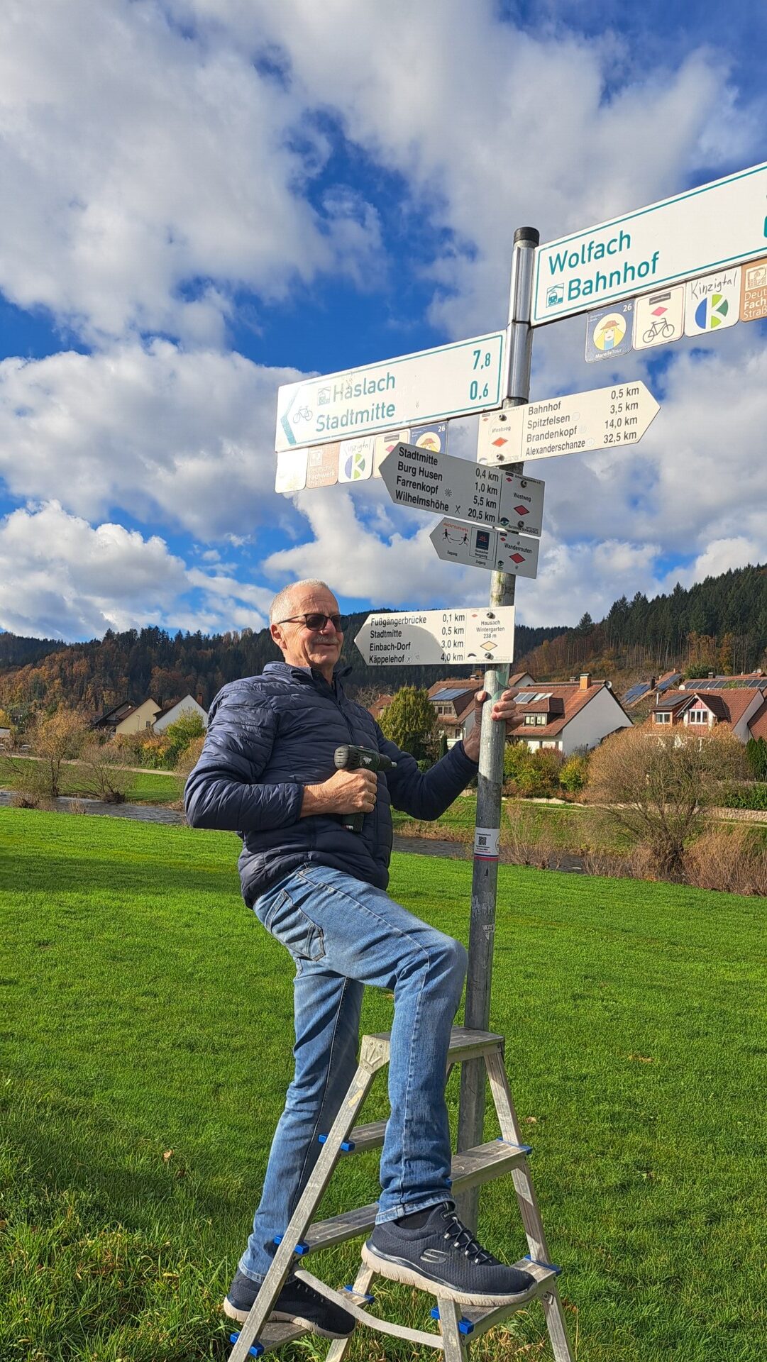 Hausacher Wegewarte ergänzen im Stadtbereich die Beschilderung für den Bergsteig und den Abenteuerweg